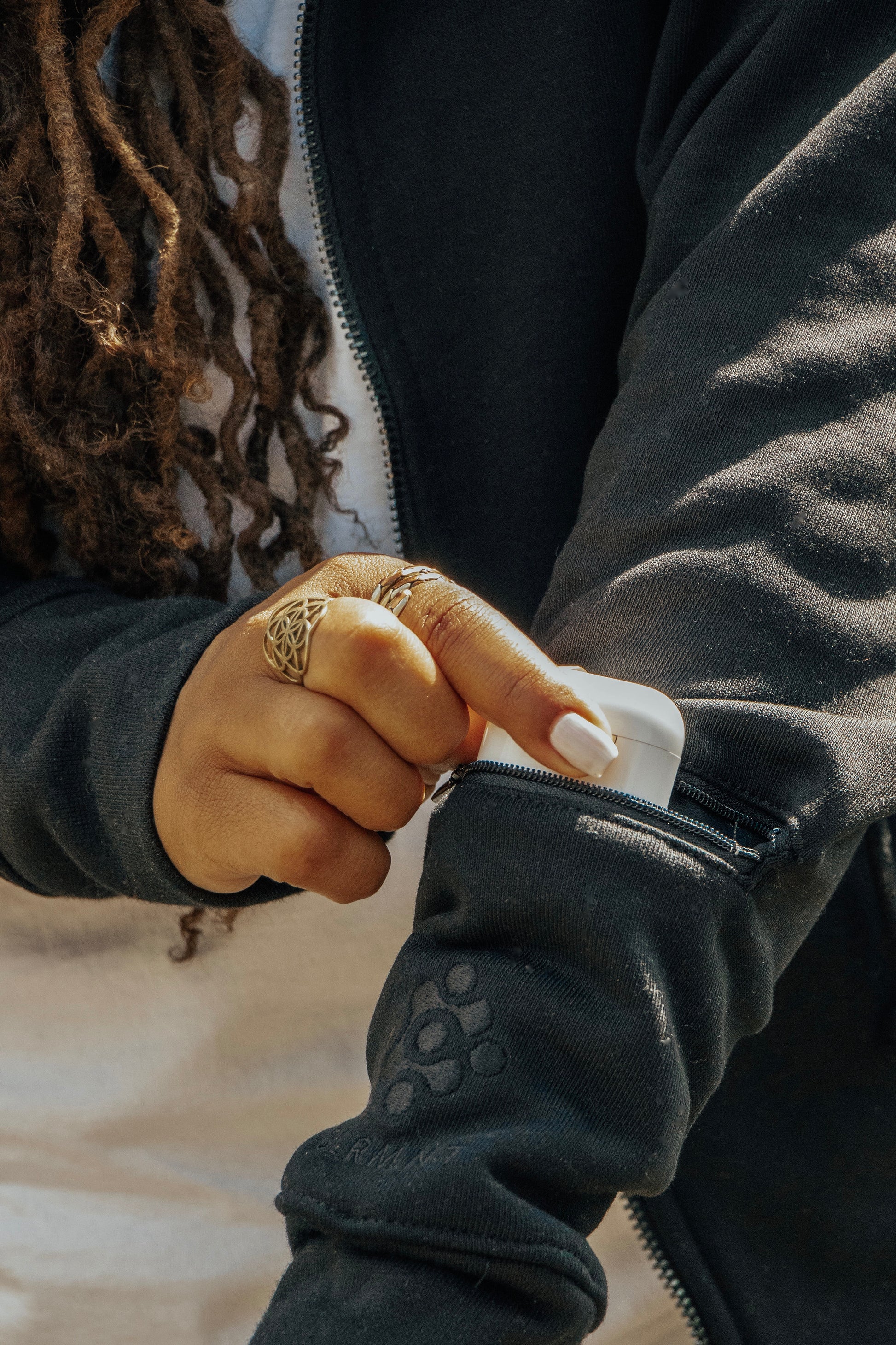 - Zippered pocket on sleeve